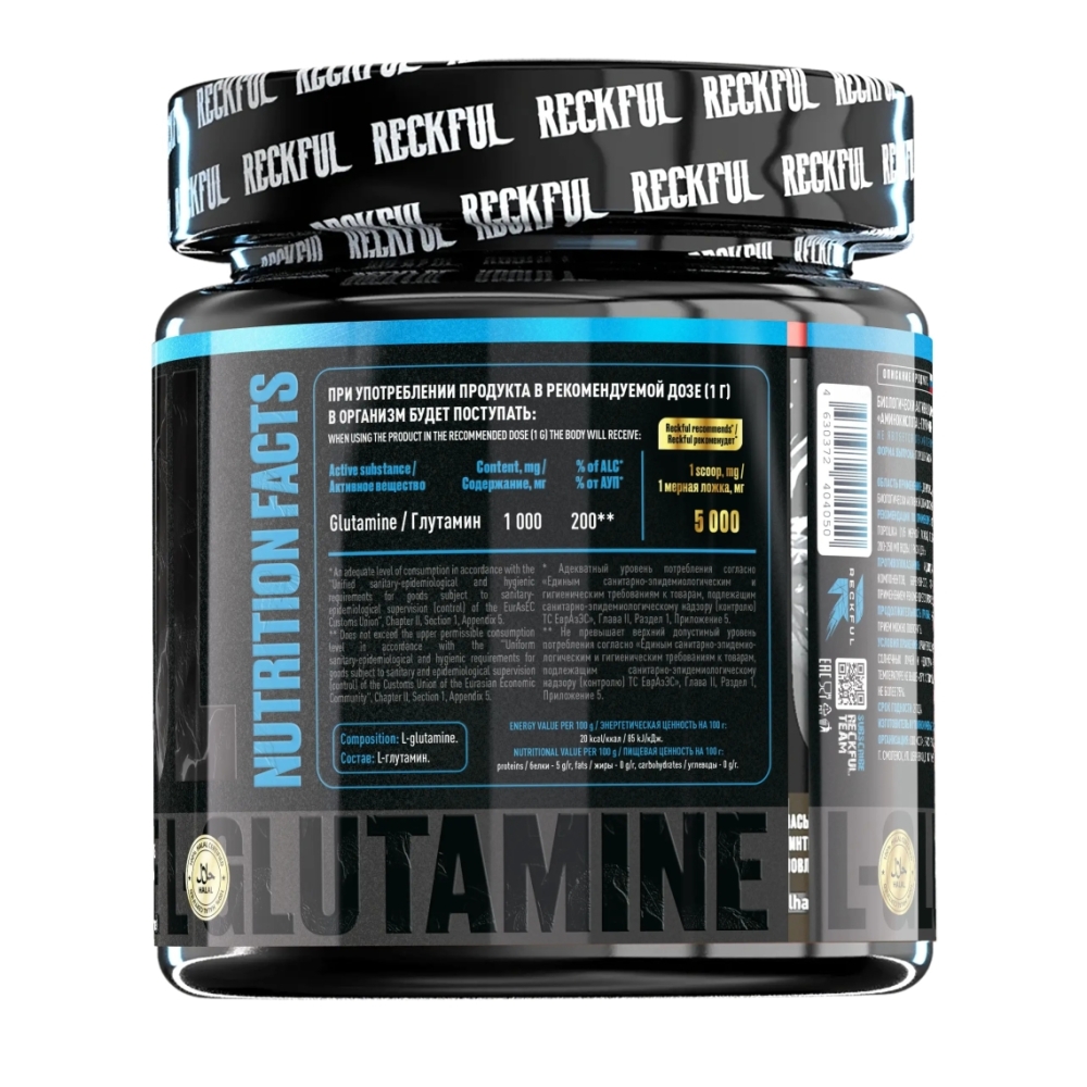 Reckful L-Glutamine — это чистый L-глютамин в порошковой форме, предназначенный для восстановления мышц после тренировок, поддержки иммунной системы и предотвращения катаболизма. Продукт идеально подходит как для силовых, так и для выносливых видов спорта.