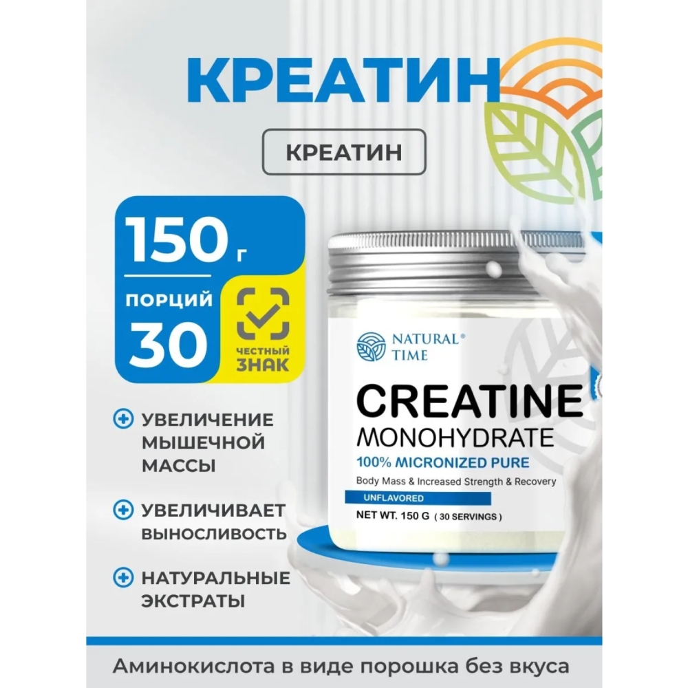 Готовы выйти за пределы своих возможностей? Natural Time КРЕАТИН — не просто добавка, а научно доказанный путь к новым рекордам. Эффект — уже с первых дней!