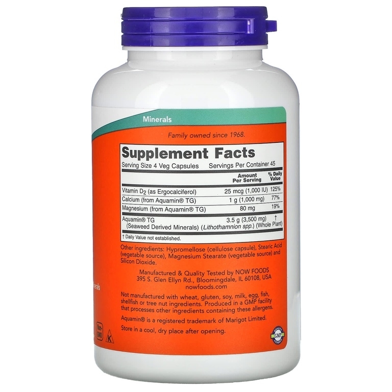 Aquamin — это биодоступный мультиминеральный комплекс из морских красных водорослей. Aquamin — отличный источник кальция, магния и более 70 дополнительных микроэлементов. Исследования показывают, что он может поддерживать надлежащую минерализацию костей и регулировать ключевые факторы, участвующие в нормальной иммунной реакции при обычной повседневной работе суставов. Клинические исследования показали, что Aquamin® помогает поддерживать здоровье и подвижность суставов. Витамин D2 обеспечивает дополнительную поддержку здоровья костей и подходит для вегетарианцев.