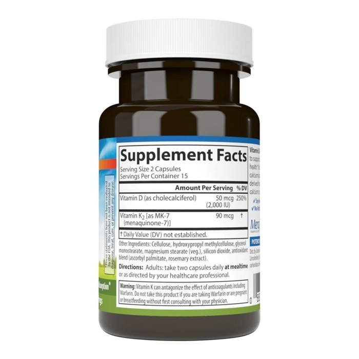 Витамины D3 и K2 работают в синергии для поддержания сердечно-сосудистого здоровья и здоровья костей. Витамин D3 способствует регуляции усвоения кальция, а витамин K2, полученный из нутов, помогает направлять кальций в наши кости.