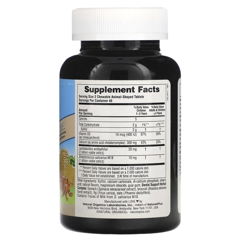 Размер порции: 2 жевательные таблетки в форме животных
